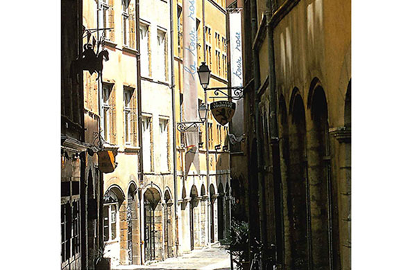 Perspective des berges et ça presque-île : un des endroits les plus pitoresques et agréable de Lyon.